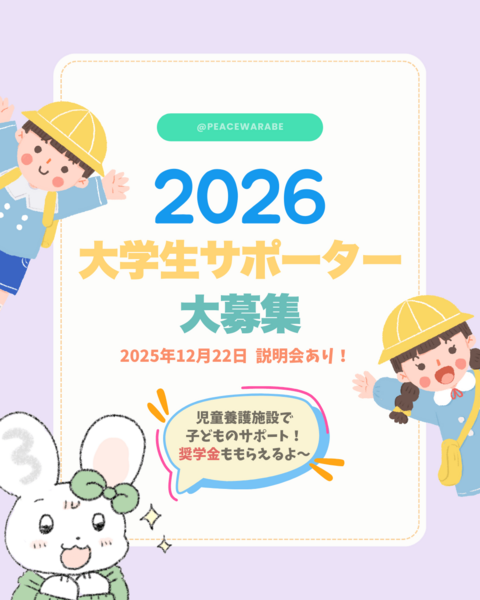 - 12月22日説明会あり!大学生の児童養護施設で子どものサポート★奨学金支給!