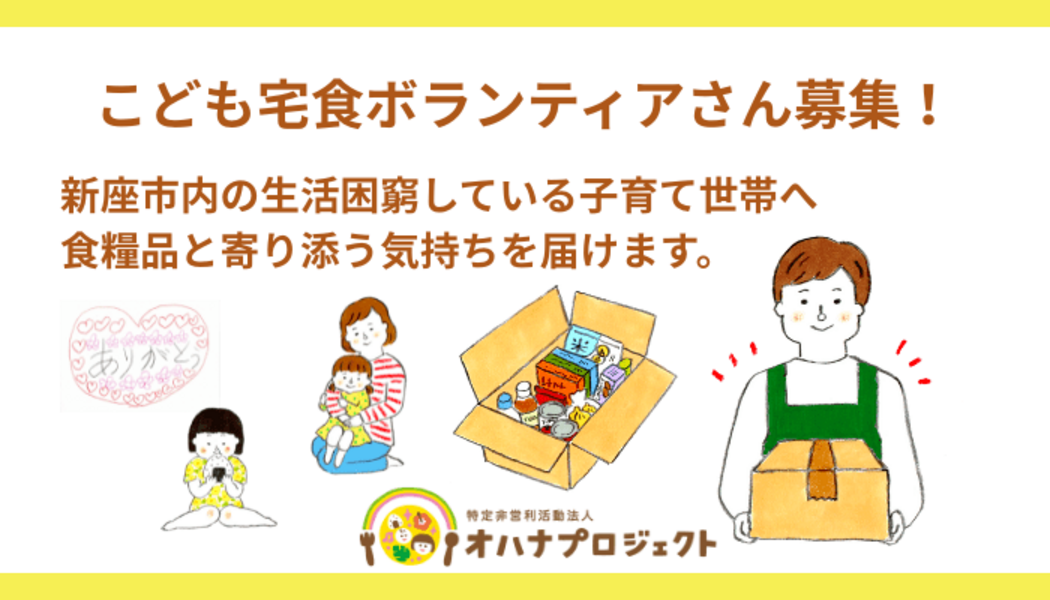 - 【こども宅食ボランティア募集!】生活困窮のこども達へ食糧品をお届けします