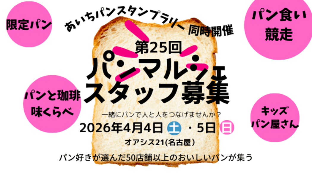 - 【4月4日・5日】オアシス21でのパンマルシェ運営ボランティア募集!